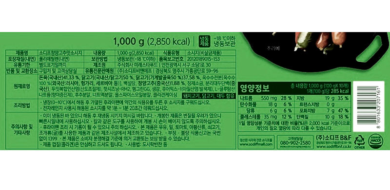 소디프 소시지(청양고추맛 1Kg/EA) 소세지