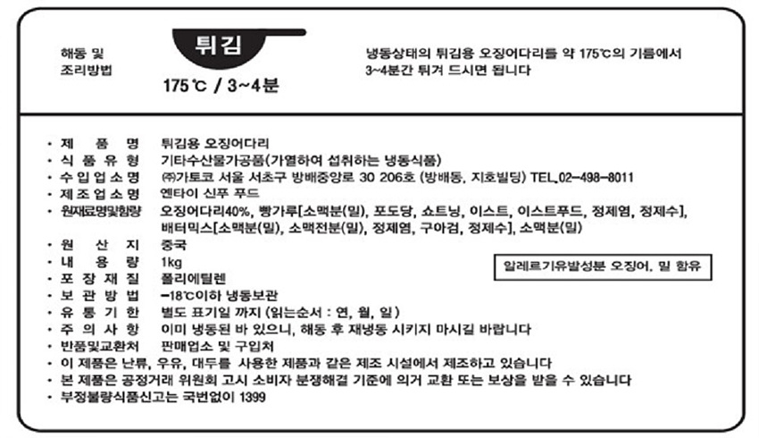 가토코 오징어다리가라아게(튀김용 1Kg/EA)
