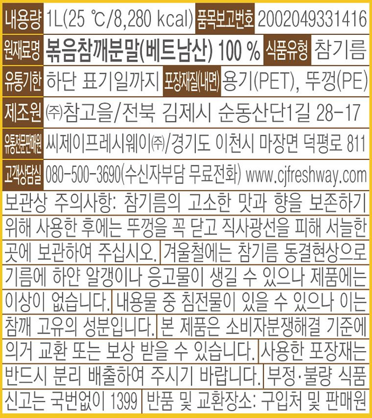 이츠웰 참기름(NEW_PET_1L/EA) 이미지