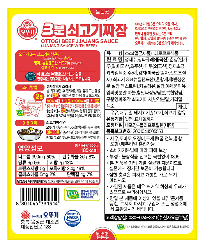 3분 쇠고기짜장(200g/EA) 소고기짜장