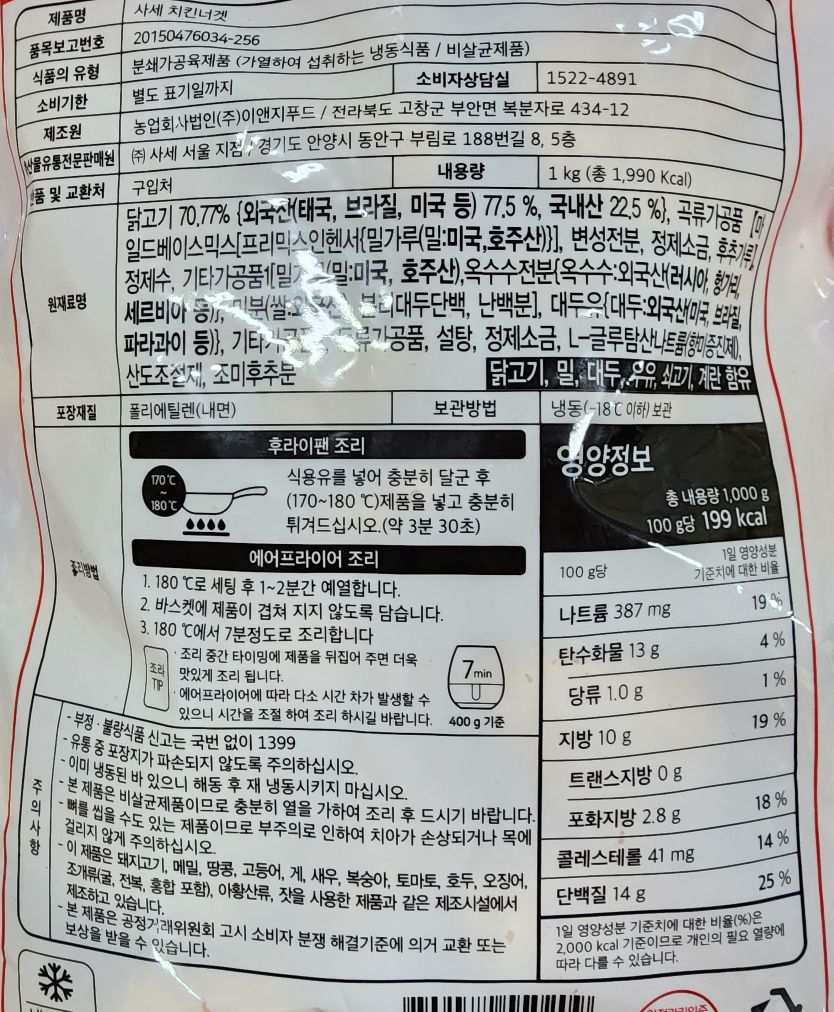 사세 치킨너겟 1kg