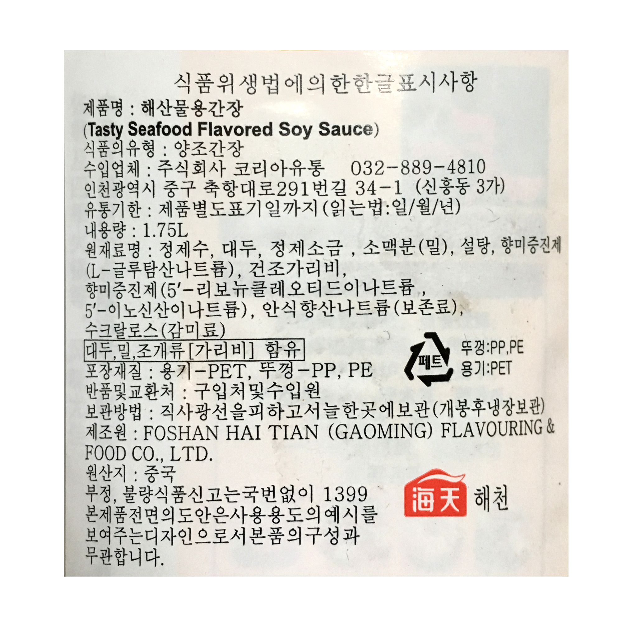 해천 해선간장(1.75L 1.75Kg/EA) 이미지