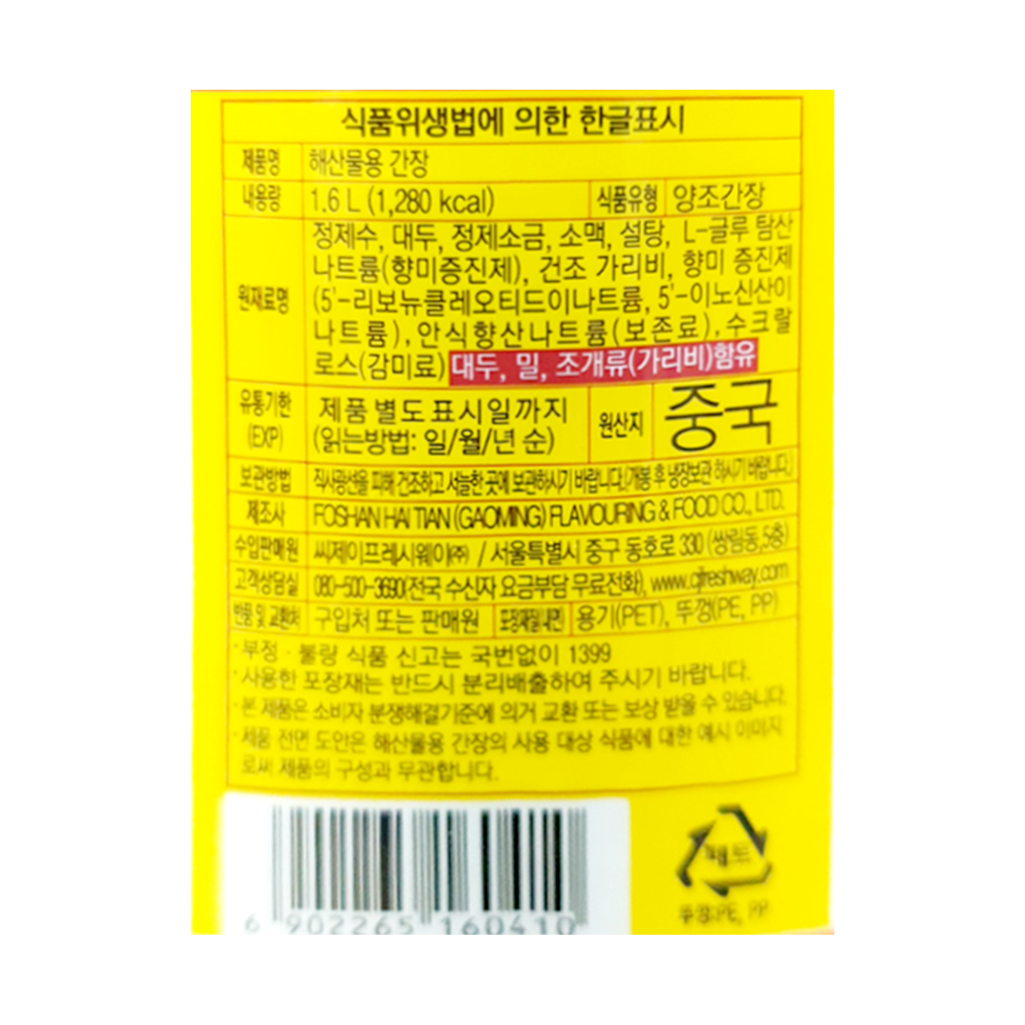 해천 해선간장(1.6L_PET 1.6Kg/EA)