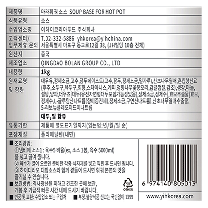 하이디라오 마라훠궈소스(대용량 1Kg/EA)