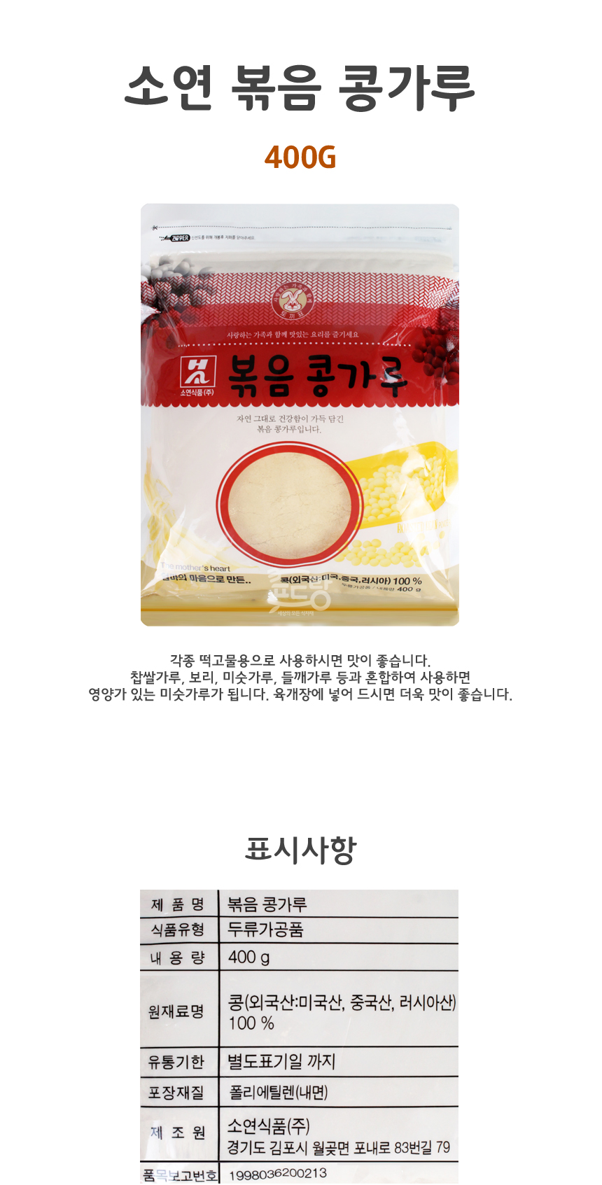 ![볶음콩가루[소연,떡고물,콩고물]400g 이미지](https://content.foodspring.co.kr/vendor/1622/images/56_7848779687_r.jpg?f=webp&s=876x876&t=inside)