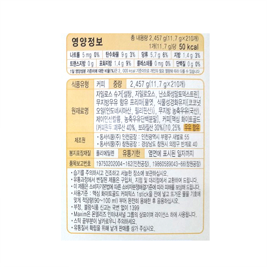 맥심 커피믹스(화이트골드_210T 2.457Kg/EA)