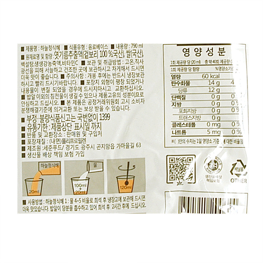하늘청 식혜(790ml_NEW_농축5배 1Kg/EA) 이미지
