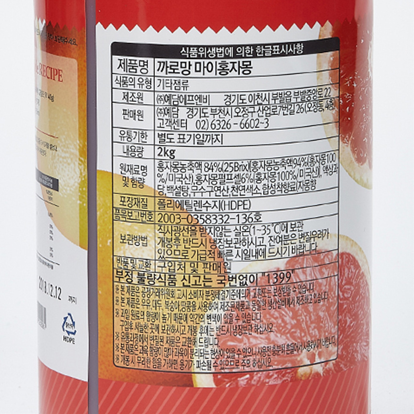 까로망 홍자몽 농축액(2Kg/EA) 이미지