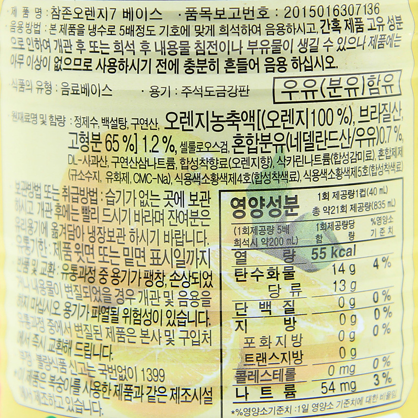참존식품 오렌지원액(835ml 835g/EA) 이미지
