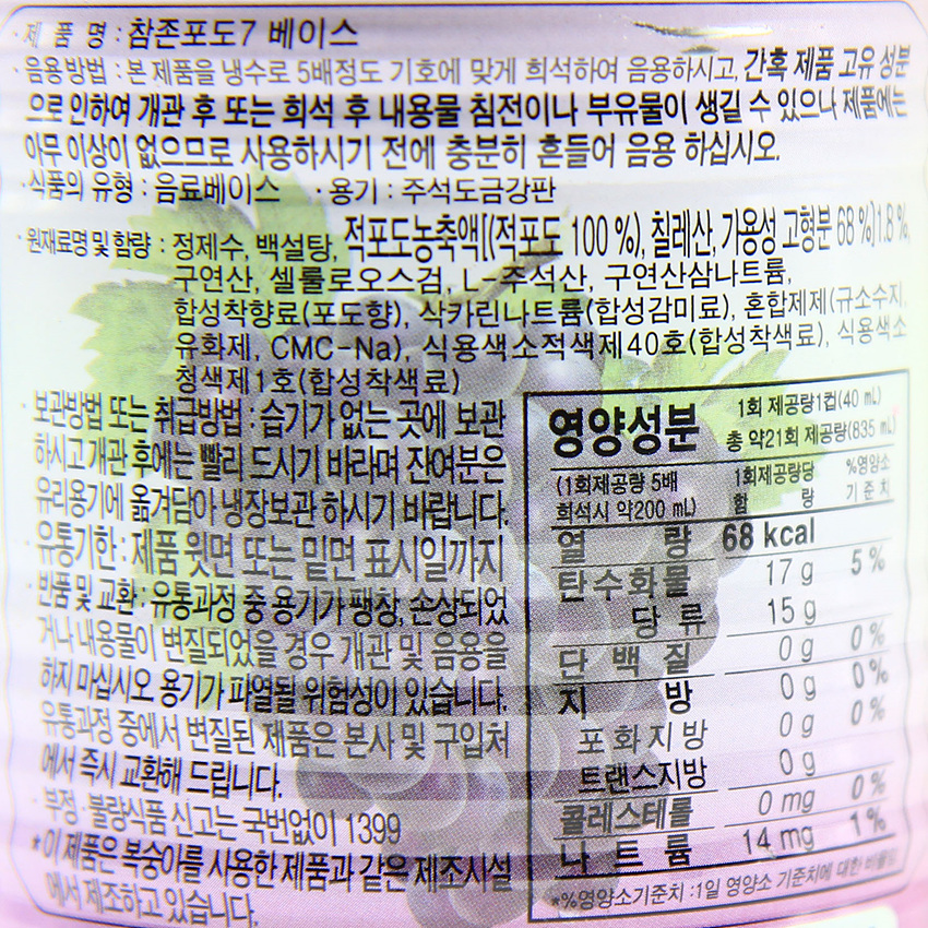 참존식품 포도원액(원액_835ml 835g/EA)