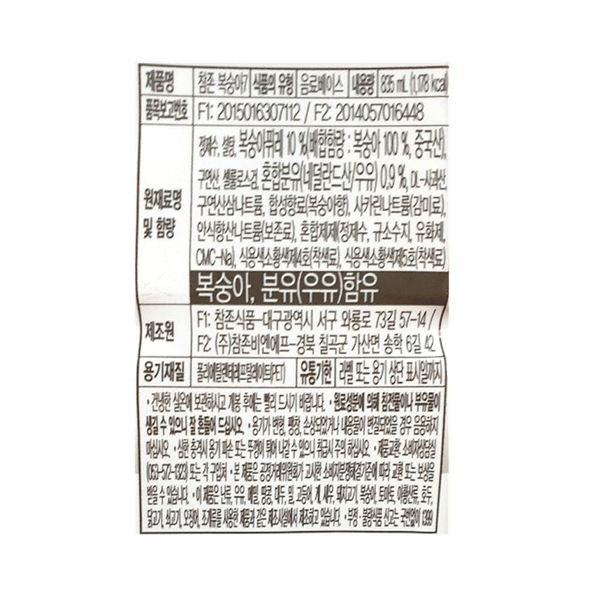 참존식품 복숭아원액(원액_835ml 835g/EA) 이미지