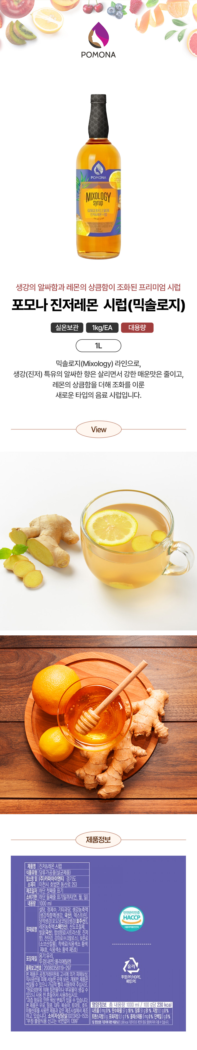 포모나 진저레몬  시럽(믹솔로지 1Kg/EA) 이미지