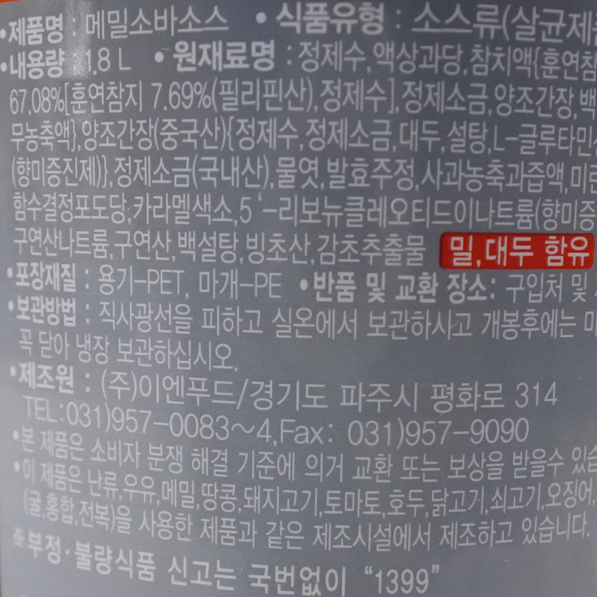 이엔푸드 모밀소바(1.8L 1.8Kg/EA)