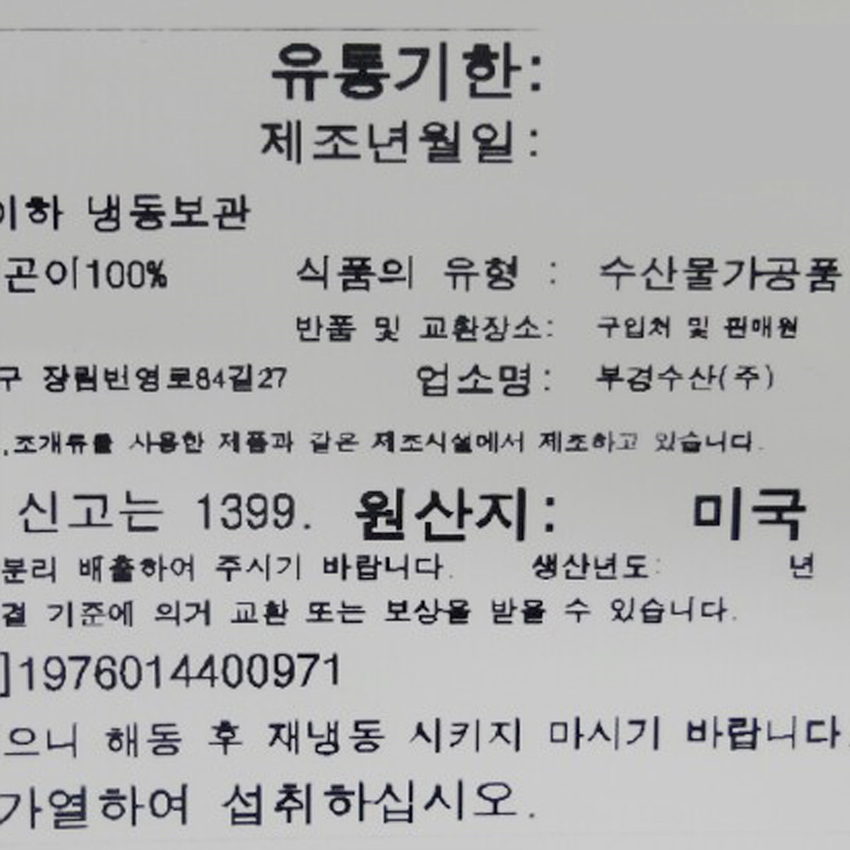 본 제품은 제품입고일별 소비기한 또는 품질유지기한이 상이하므로, 필요시 고객센터로 문의하여 주십시오. 제조일로부터 180일 까지