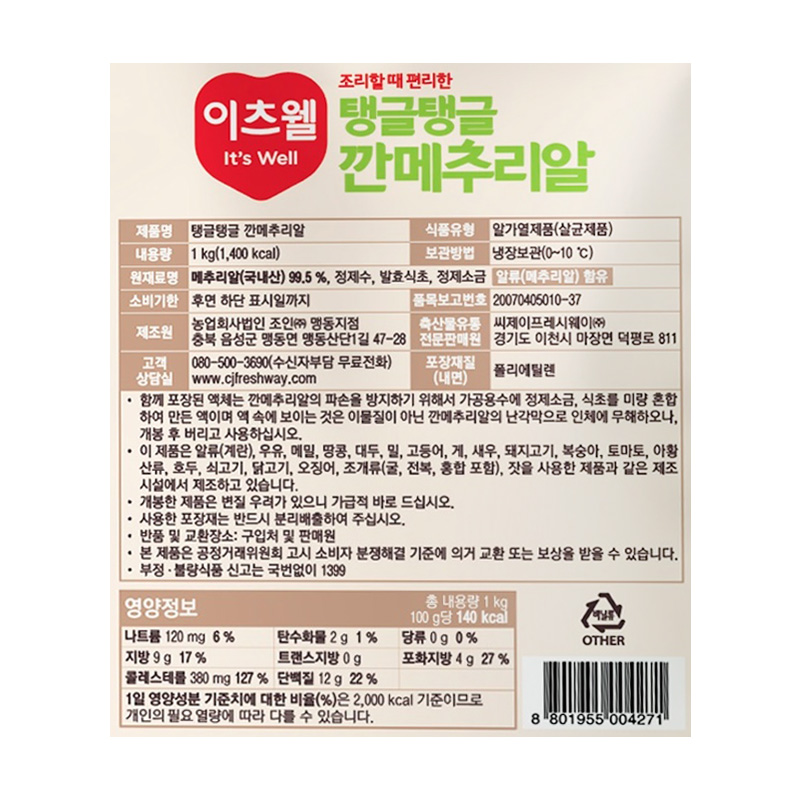 이츠웰 깐메추리알(무항생제_원란 행사용 1Kg/EA)