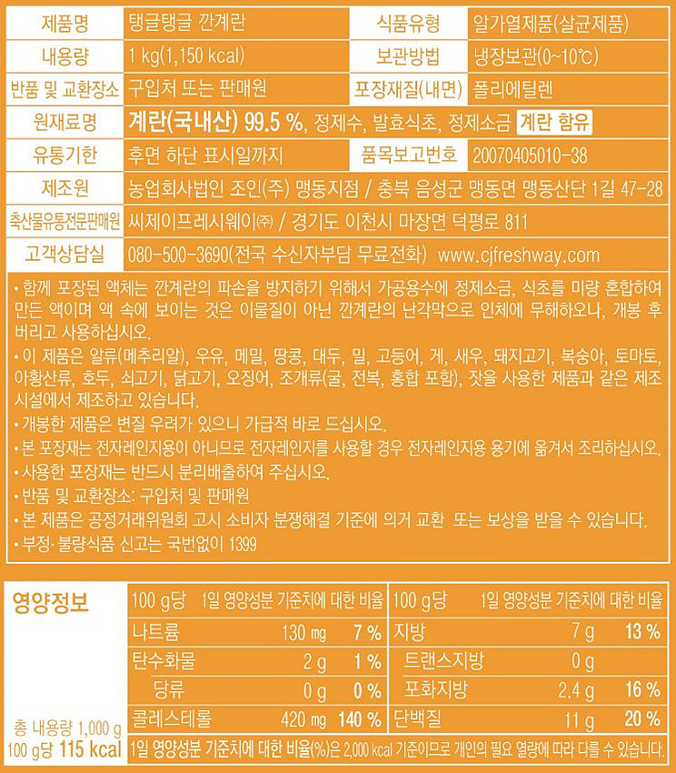 이츠웰 깐계란(1Kg/PAC)/국내산