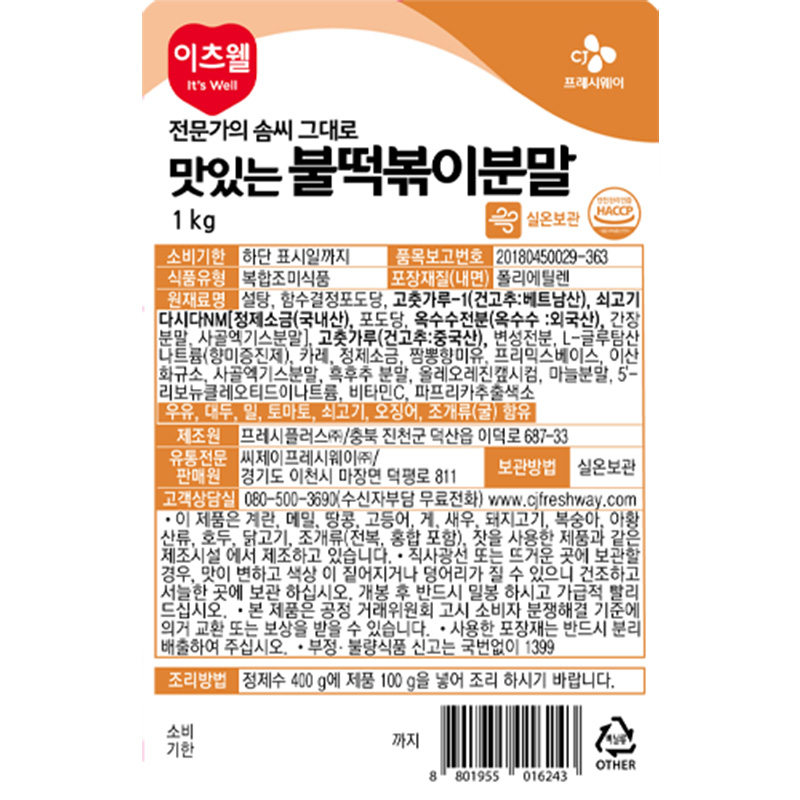 이츠웰 불떡볶이분말(1Kg/EA)