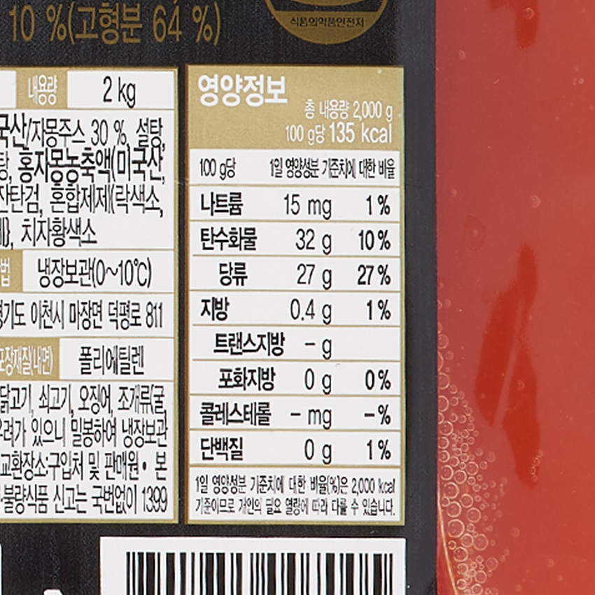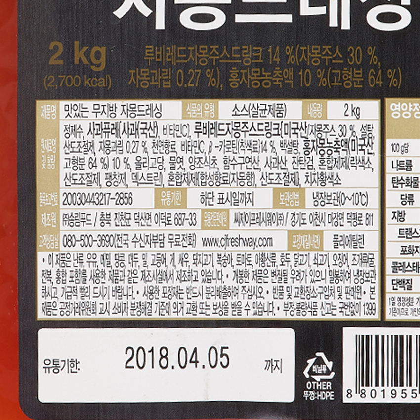 이츠웰 자몽소스(무지방 2Kg/EA) 이미지