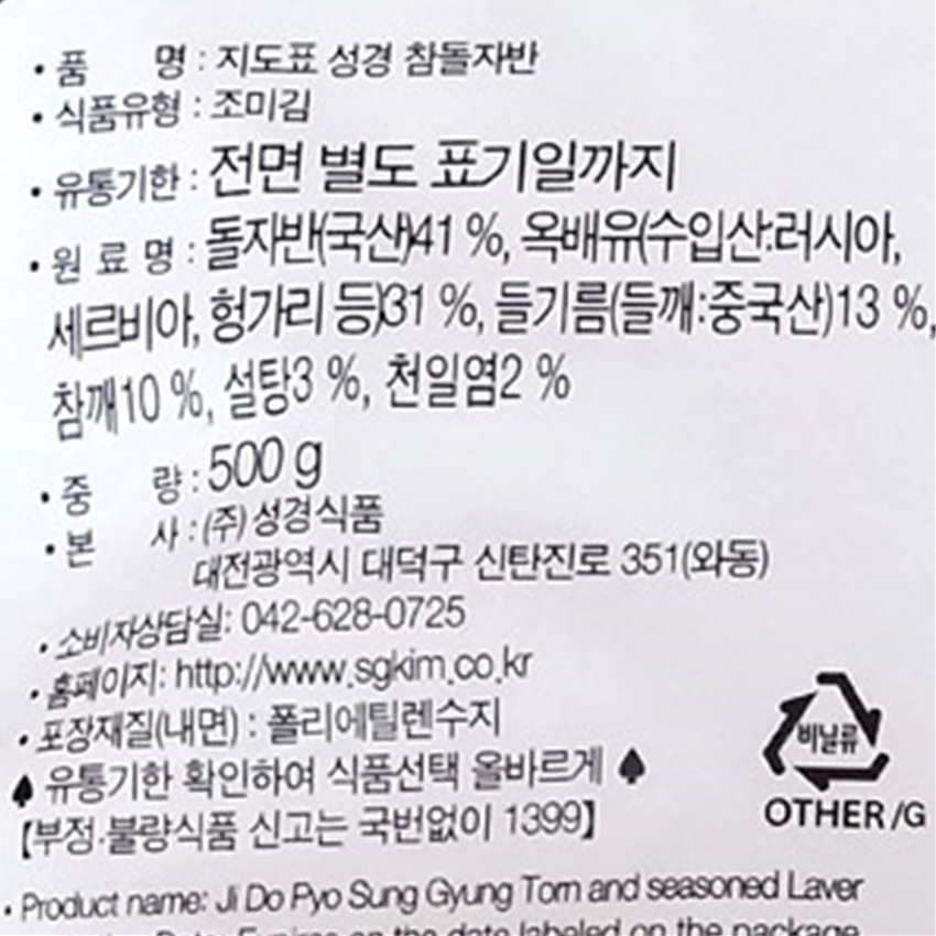 성경식품 김자반볶음(500g/EA)/국내산