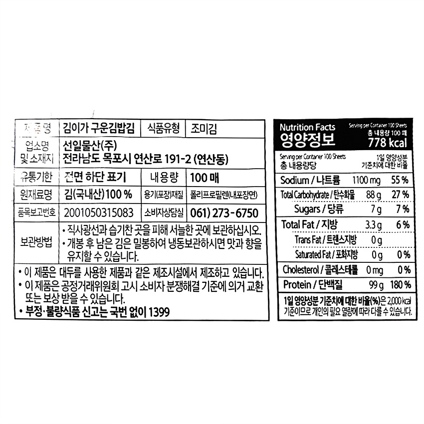 선일물산 구운김밥김(상품 100매 200g/EA)/국내산