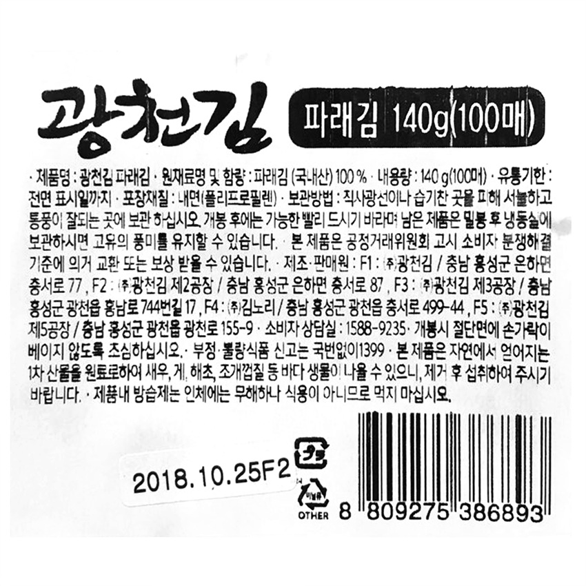 광천김 파래김(100매 140g/EA)/국내산 이미지