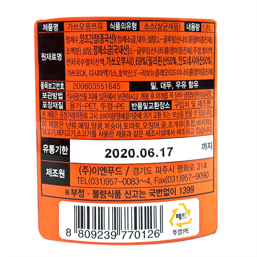 이엔푸드 쯔유(1.8L 1.8Kg/EA)