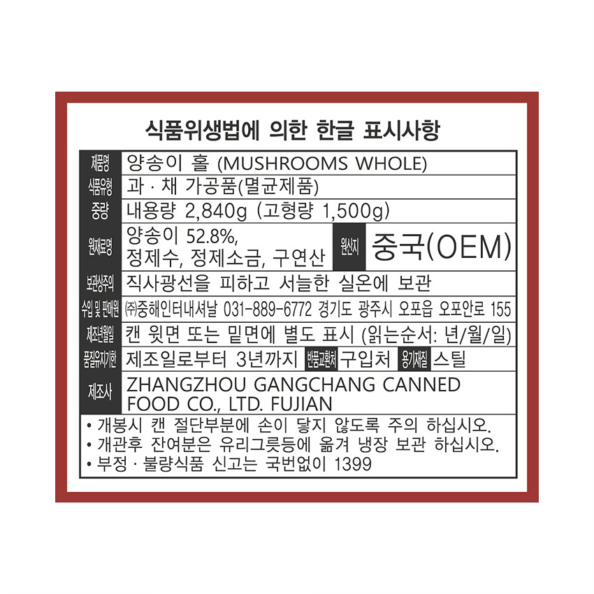 차이웰 양송이캔(홀 2.84Kg/EA) 이미지