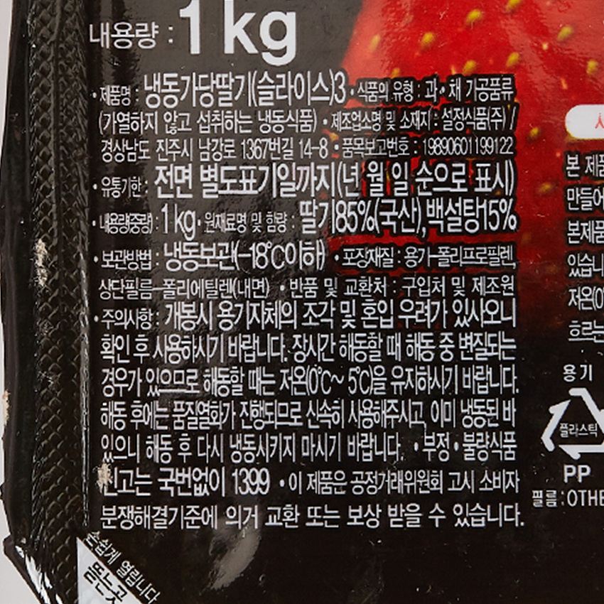 웰스피아 냉동 딸기(가당_슬라이스 1Kg/EA)/국내산 이미지
