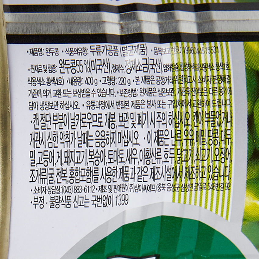 삼아씨에프 완두콩캔(원터치 400g/EA) 이미지