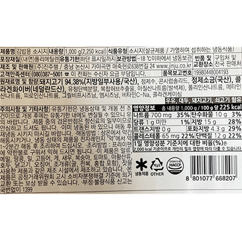진주햄 후랑크 소시지(김밥용 1Kg/EA) 소세지