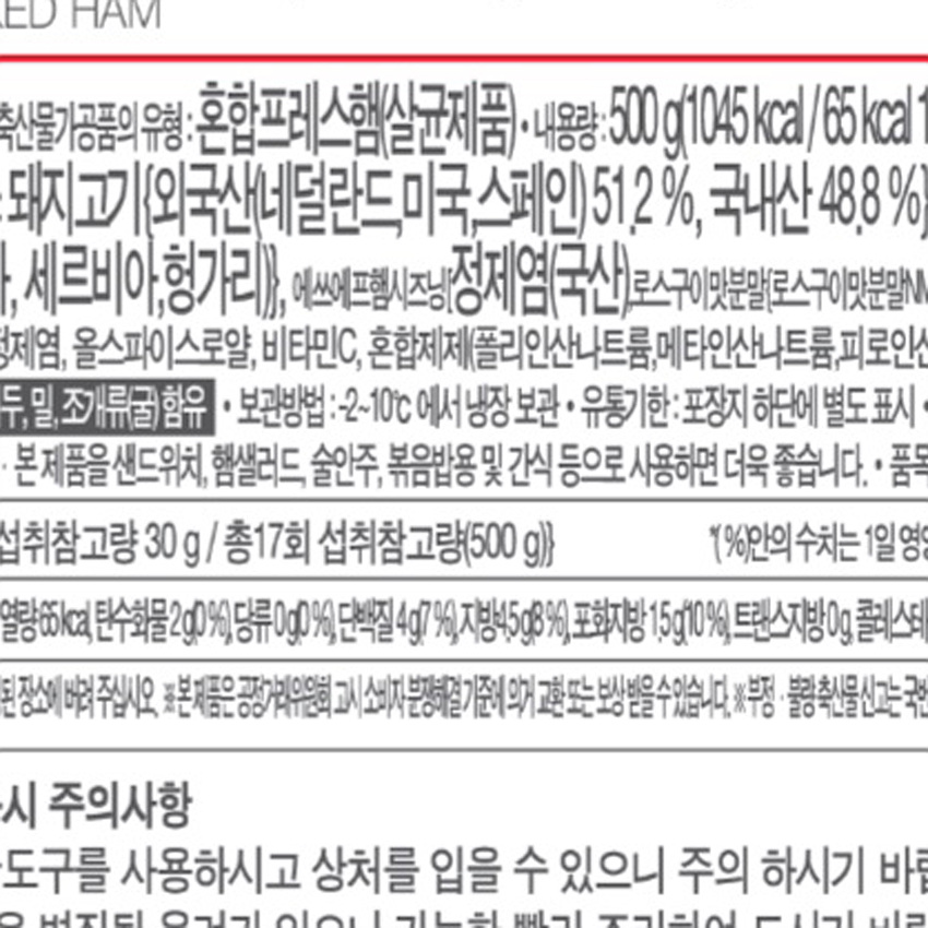 에쓰푸드 스모크햄(슬라이스 500g/EA) 이미지