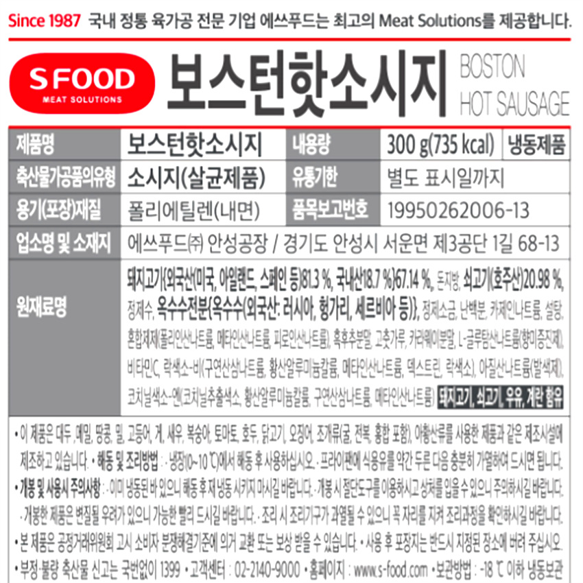 에쓰푸드 보스턴핫 소시지(300g/EA) 소세지