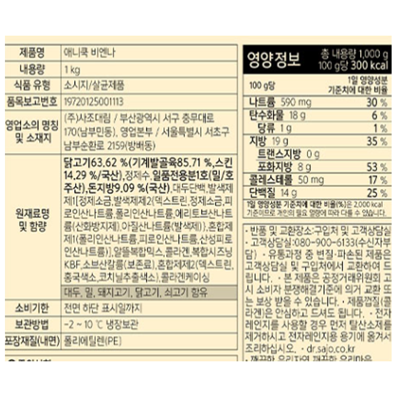 대림선 애니쿡비엔나(1Kg/EA) 소시지
