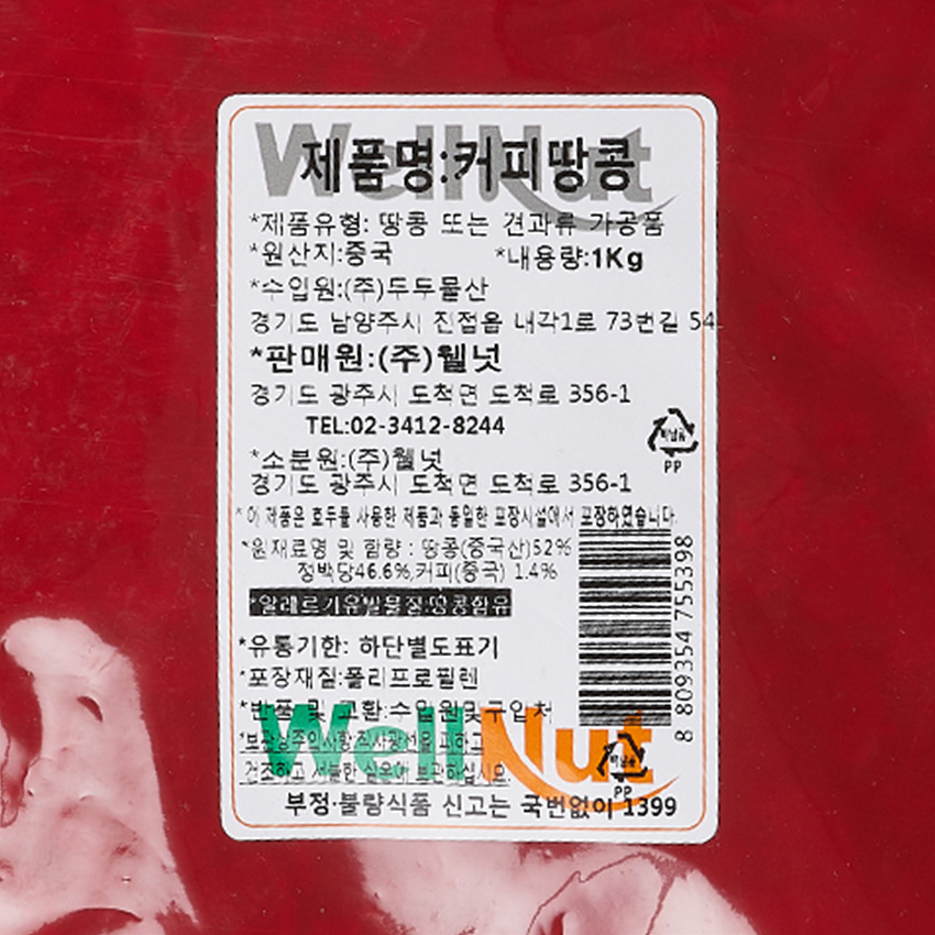 웰넛 커피땅콩(반태 1Kg/EA)