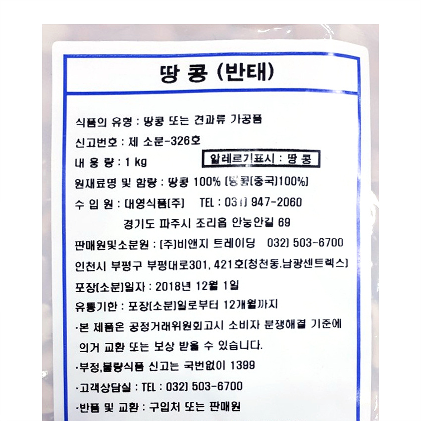땅콩(껍질무_1/2태 1Kg/PAC)