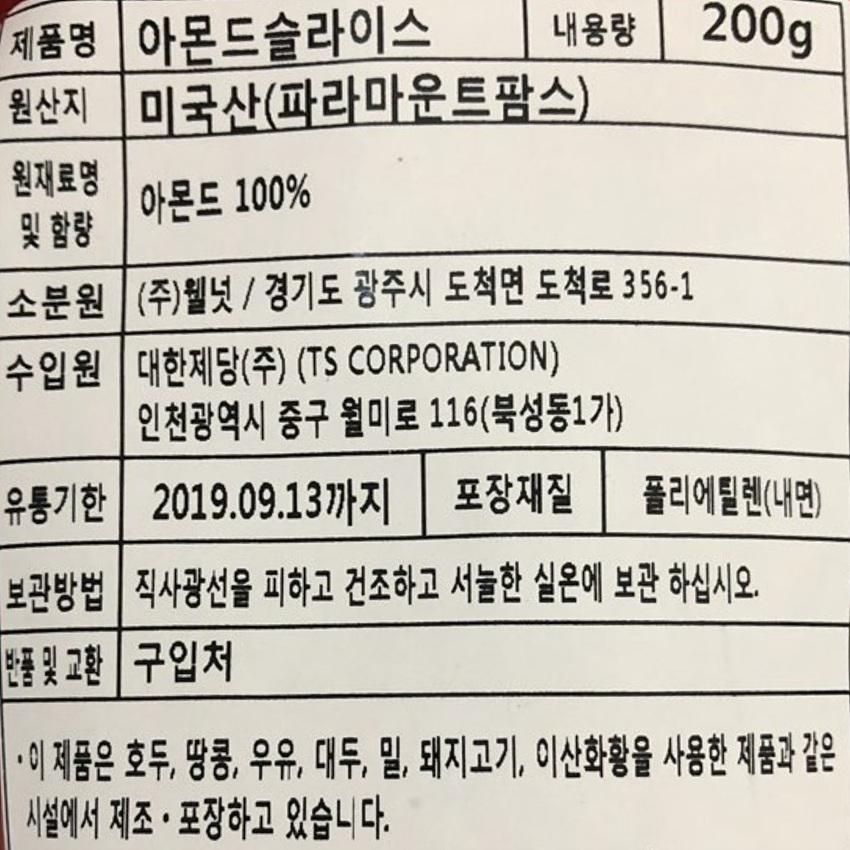웰넛 아몬드(슬라이스 200g/EA) 이미지