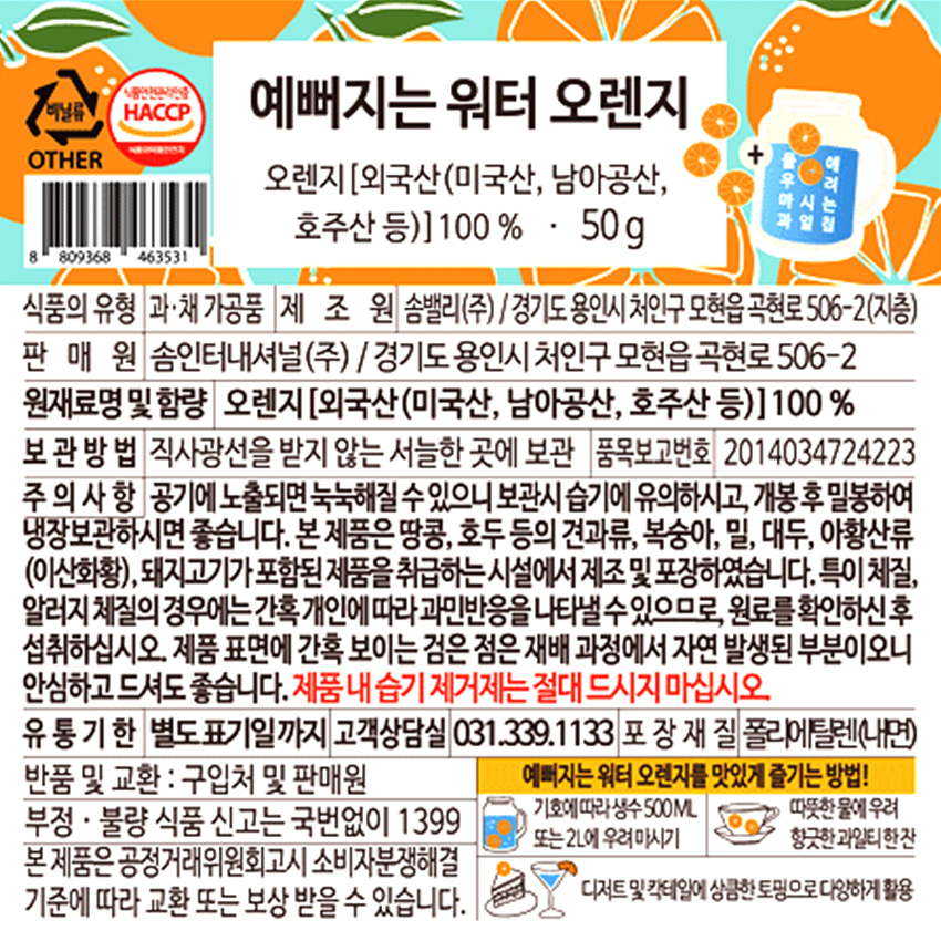 예뻐지는워터 오렌지(건조_슬라이스 50g/EA)