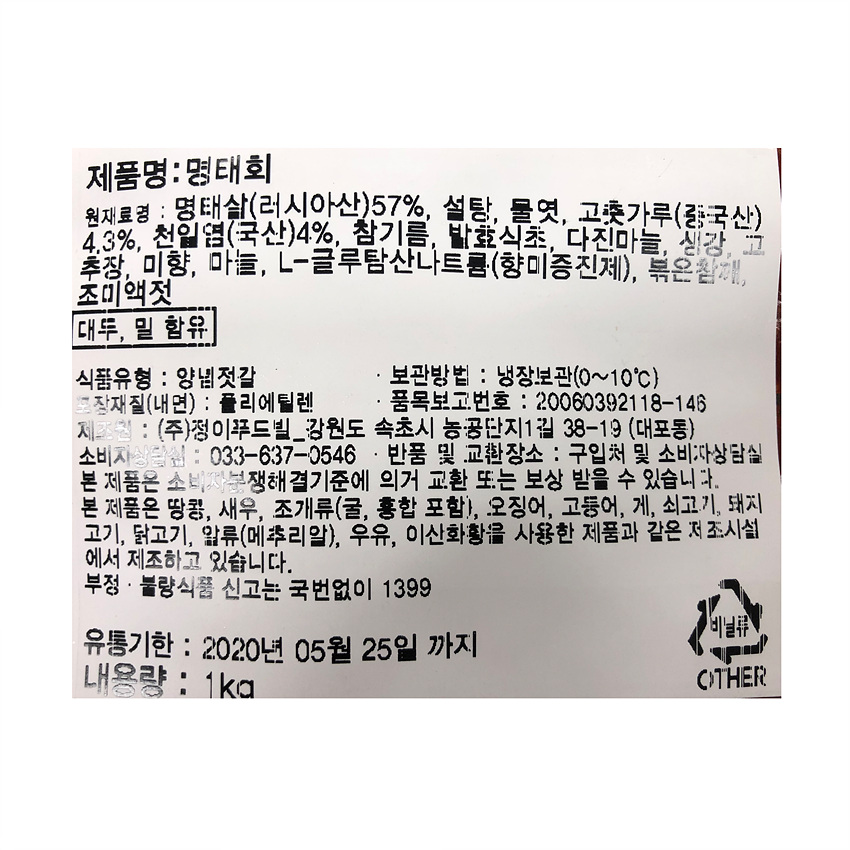 정이푸드빌 명태회젓갈(1Kg/EA)  업소용 반찬 이미지
