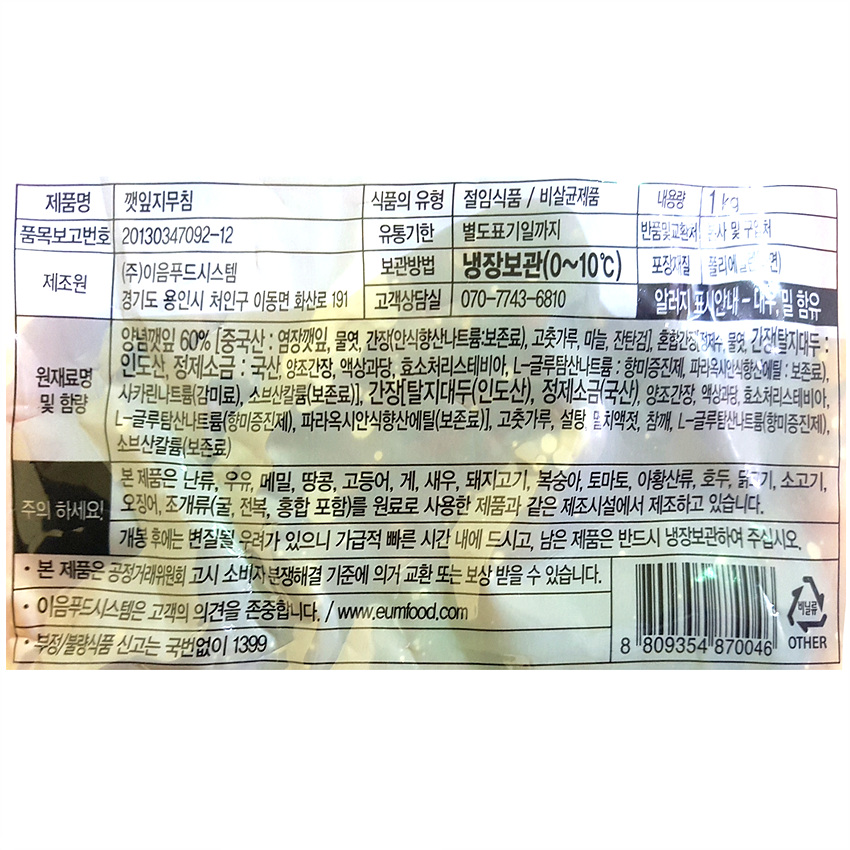 이음푸드 양념깻잎지무침(1Kg/EA) 업소용 반찬