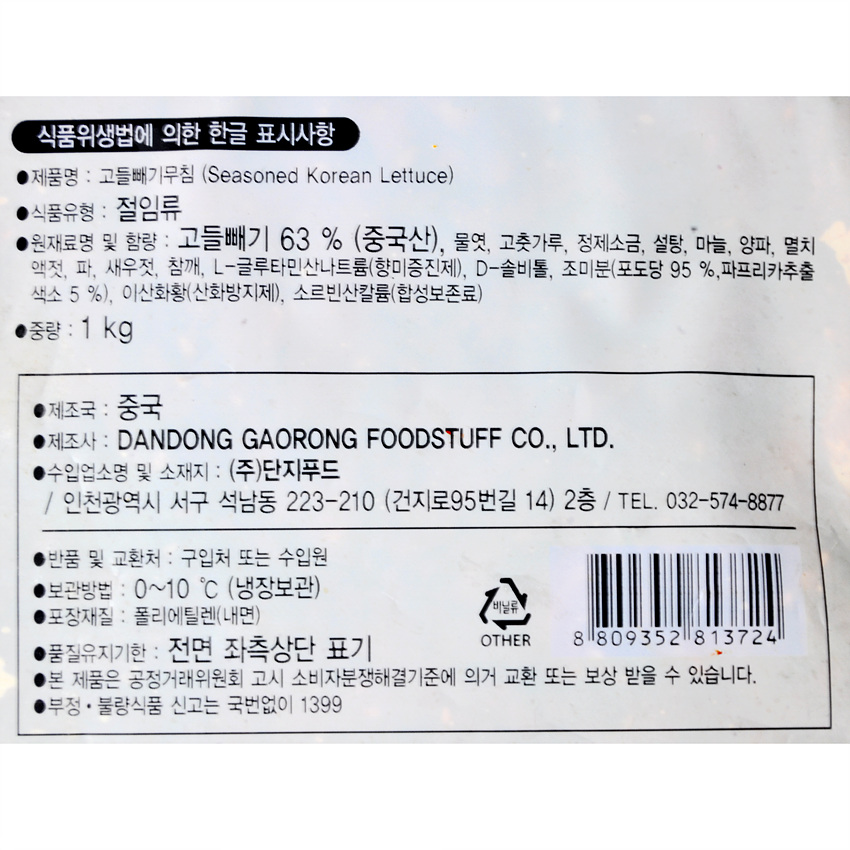 반찬단지 고들빼기무침(1Kg/EA)  업소용 반찬 이미지