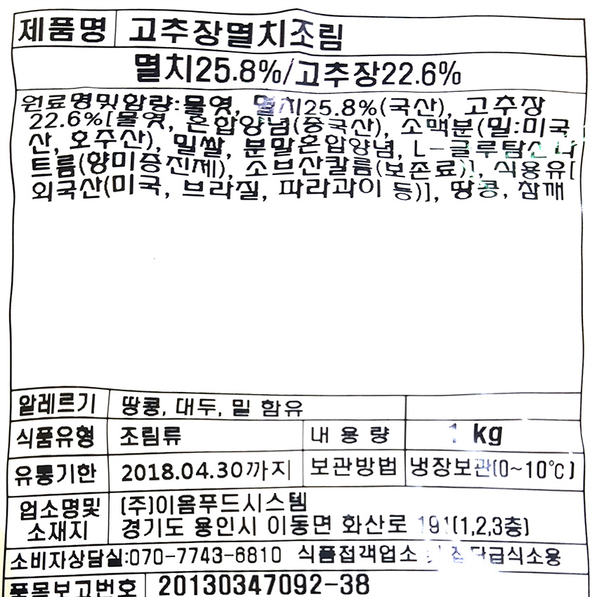 이음푸드 고추장멸치조림(1Kg/EA)  업소용 반찬 이미지