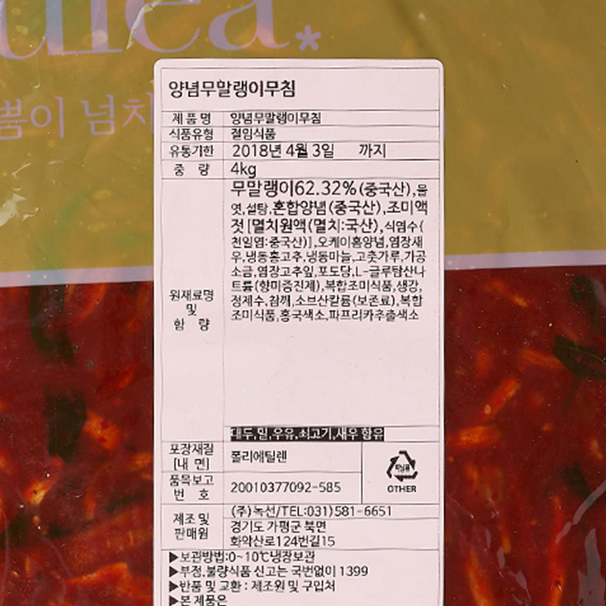 녹선 무말랭이무침(4Kg/EA)  업소용 반찬 이미지