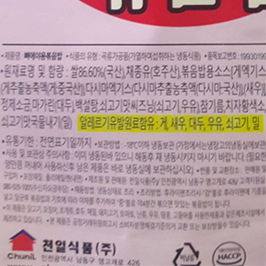 원재료명 및 함량