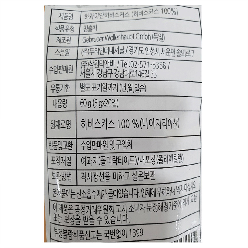 브리즈 하와이안히비스커스(3g*20T 60g/EA) 이미지