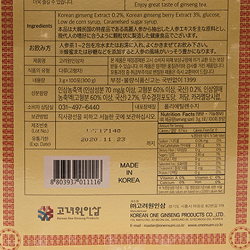 고려인삼 인삼차(3g*100T 300g/EA)