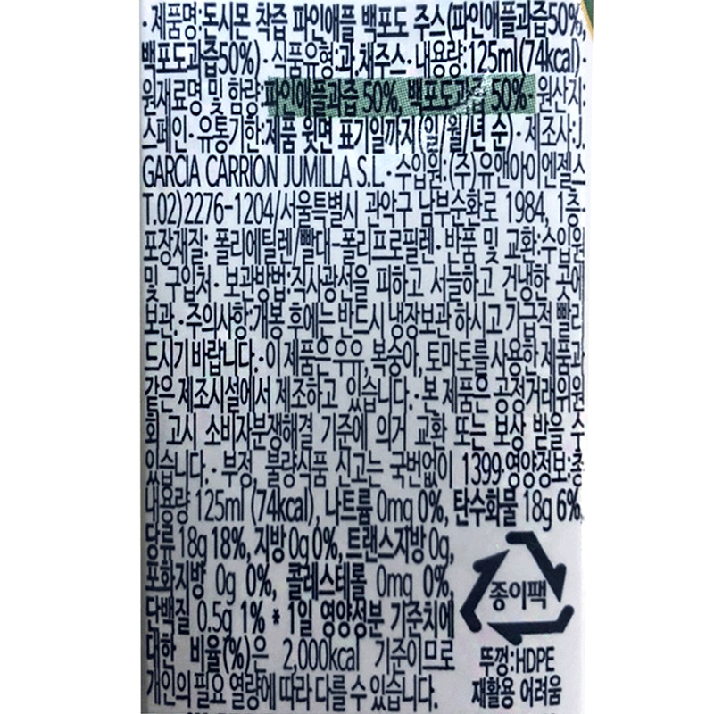 돈시몬 착즙파인애플포도주스(125ml_빨대포함 125g/EA)x40 이미지