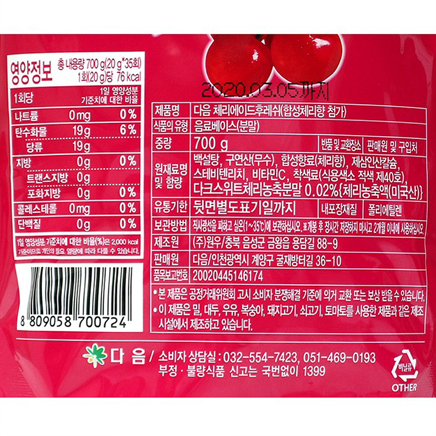 본 제품은 제품입고일별 소비기한 또는 품질유지기한이 상이하므로, 필요시 고객센터로 문의하여 주십시오. 제조일로부터 730일 까지