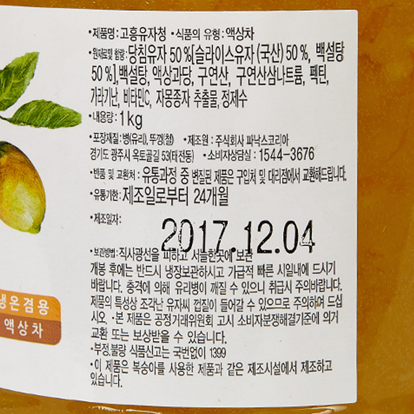 파낙스F&B 유자청(고흥 1Kg/EA) 이미지