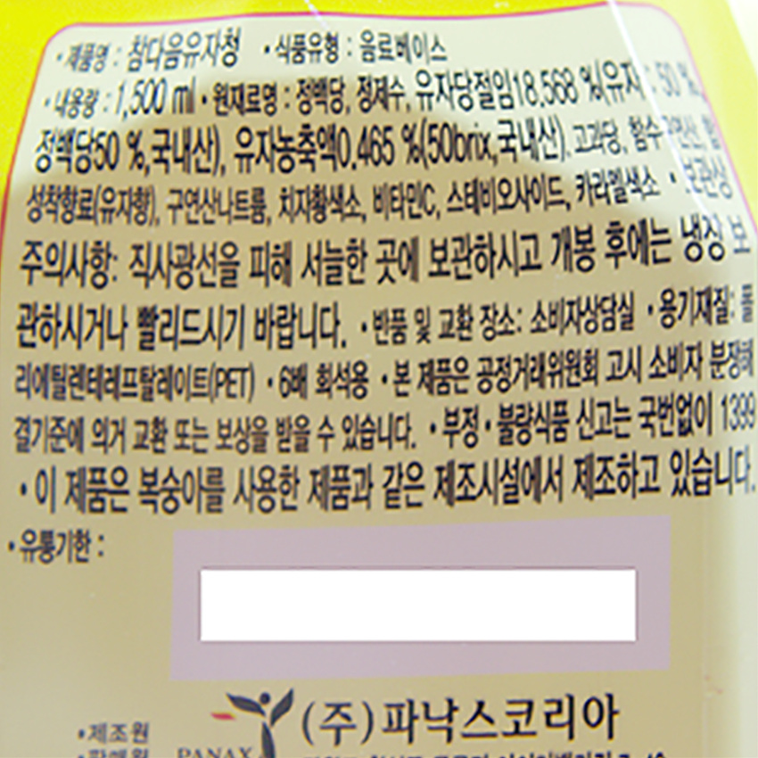 참다음 유자청(PET_1.5L_6배희석 1.965Kg/EA) 이미지