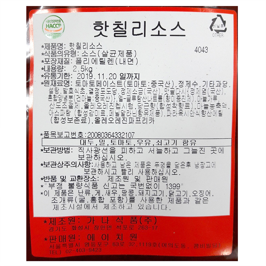가나식품 핫칠리소스(2.5Kg/EA) 이미지